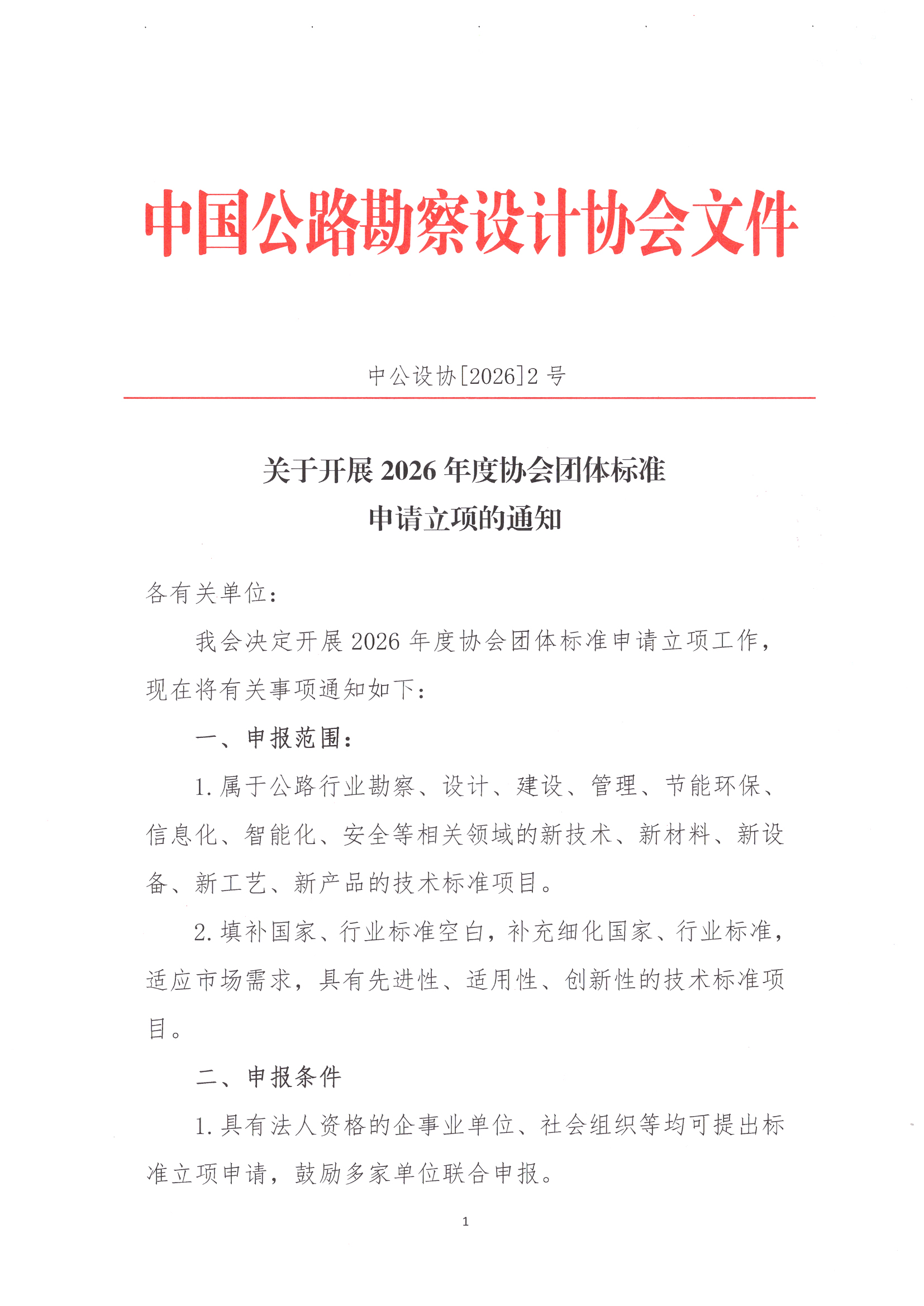 關(guān)于開展2026年度協(xié)會團體標(biāo)準(zhǔn)申請立項的通知